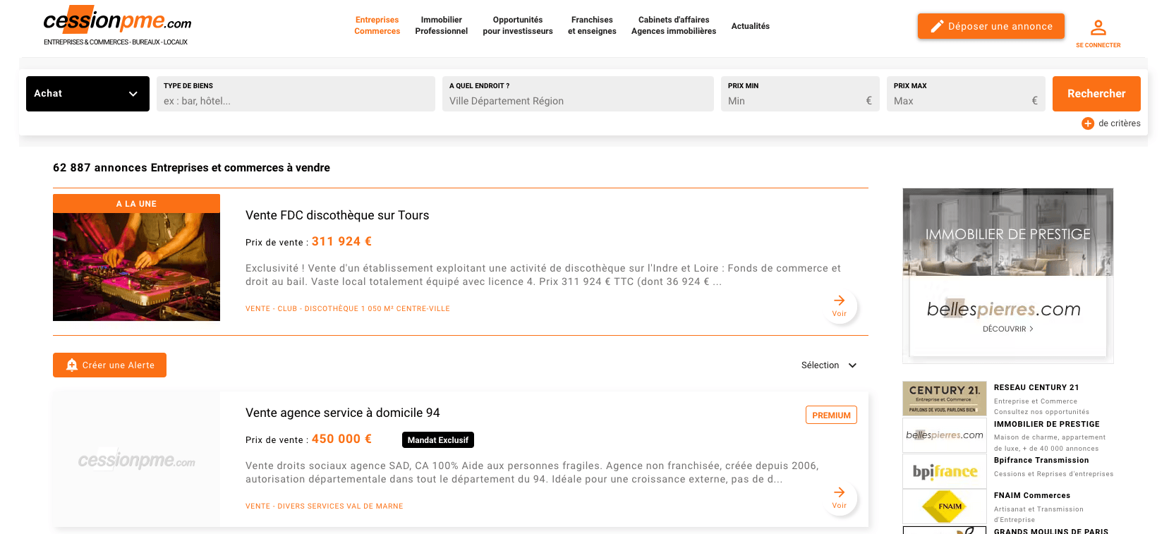 63 032 annonces | Majorité de commerces et fonds de commerce