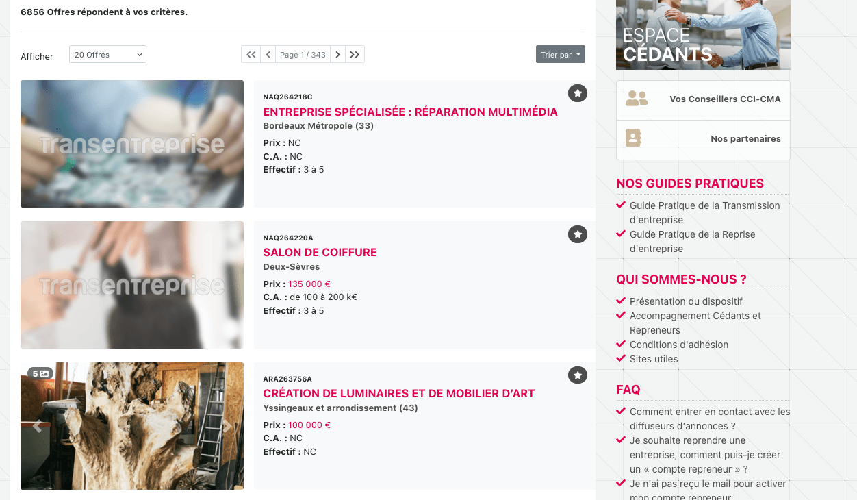 Pour un repreneur PME, Cession PME peut être utile en appliquant des filtres précis : secteur d'activité, région, fourchette de prix et chiffre d'affaires. Sans filtres actifs, le volume de dossiers hors cible peut décourager rapidement.